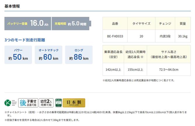 | 適応身長 | 142cm以上|幼児2人同乗時155cm以上 | ||