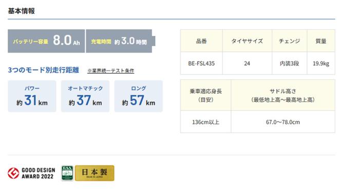 | パワーモード | 31 km | オートモード | 37 km |