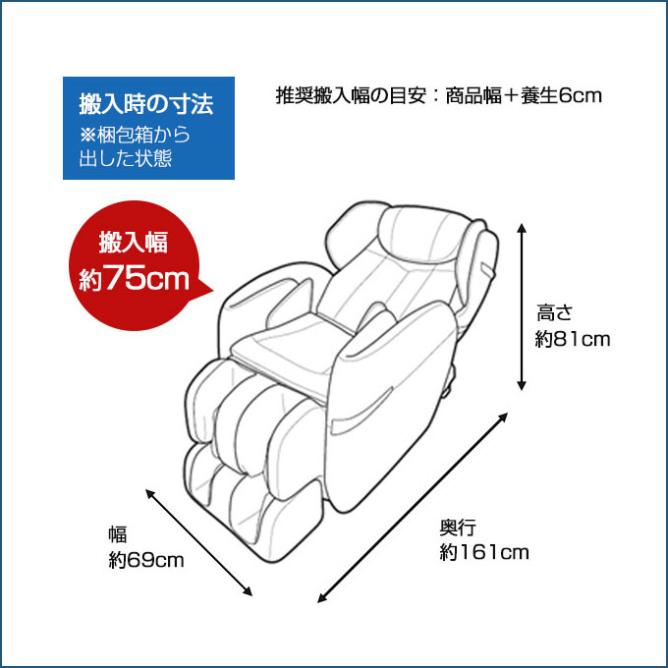 | その他機能 | 電動リクライニング|キャスター|ヒーター搭載|もみ位置自動調整|フットレスト付|リモコン収納 | 消費電力 | 190 W |