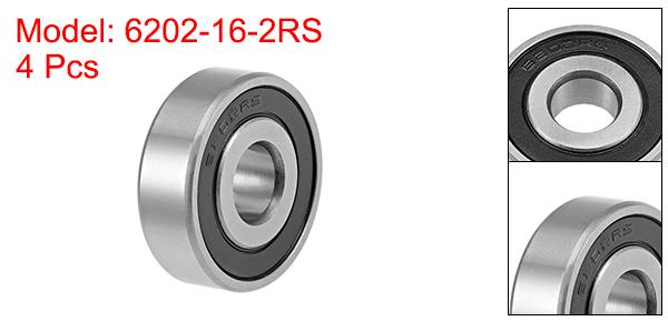 ベアリング 6202-16-2RS 深溝玉軸受 16mm内径 35mm外径 11mm幅 ダブルシール クロム鋼 ボールベアリング 4個