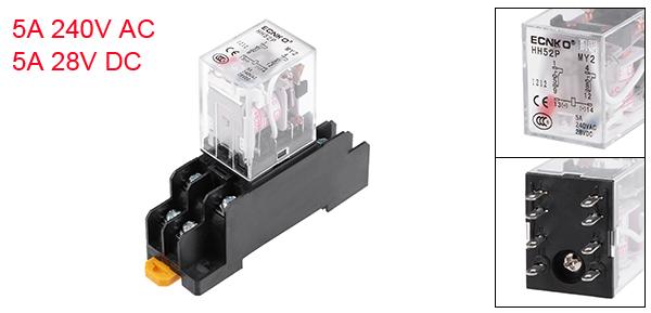 リレー AC 110V 電磁リレー ソケット付き 8ピン HH52P DPDT 2NO 2NC LEDライト付き パワーリレー